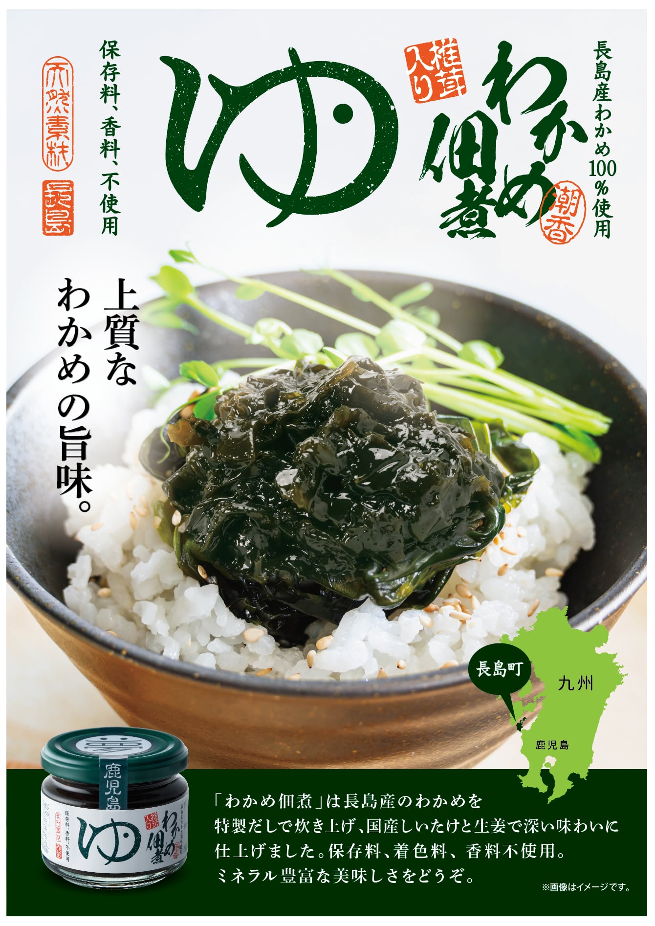 鹿児島県長島町産わかめ100%使用。